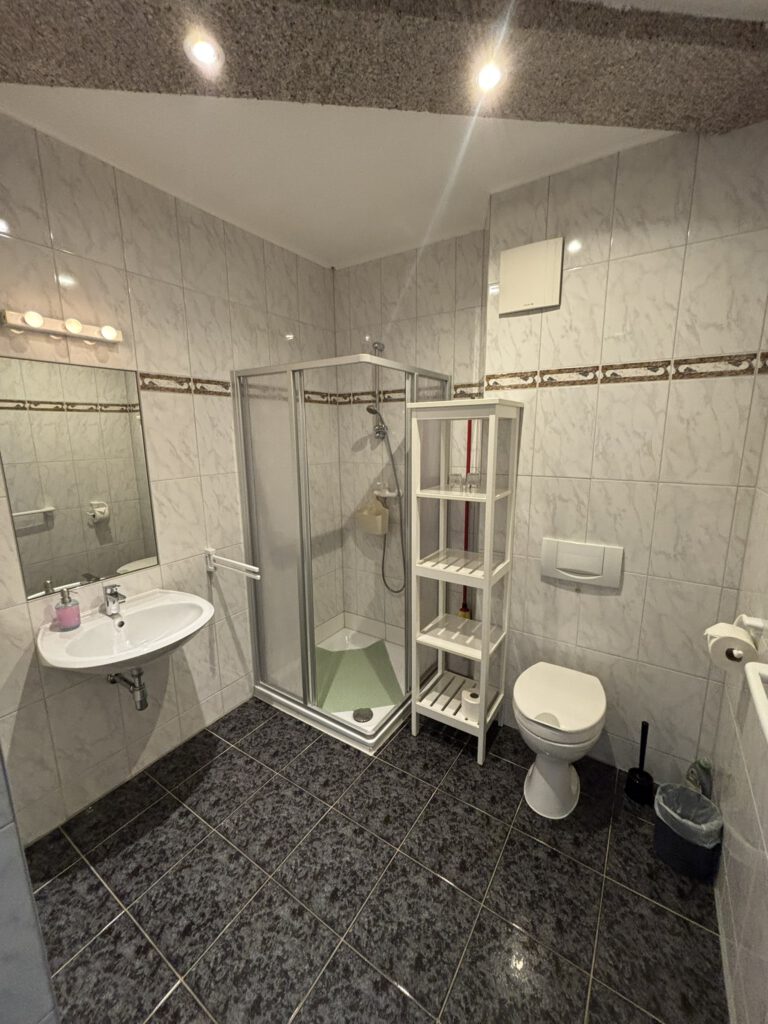 - 🚿 Badezimmer mit Duschkabine, Waschbecken & Toilette