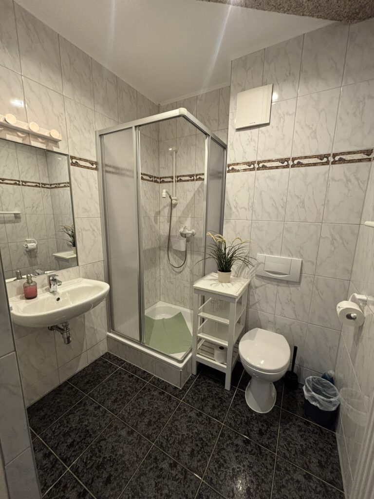 - 🚿 Badezimmer mit Duschkabine, Waschbecken & Toilette